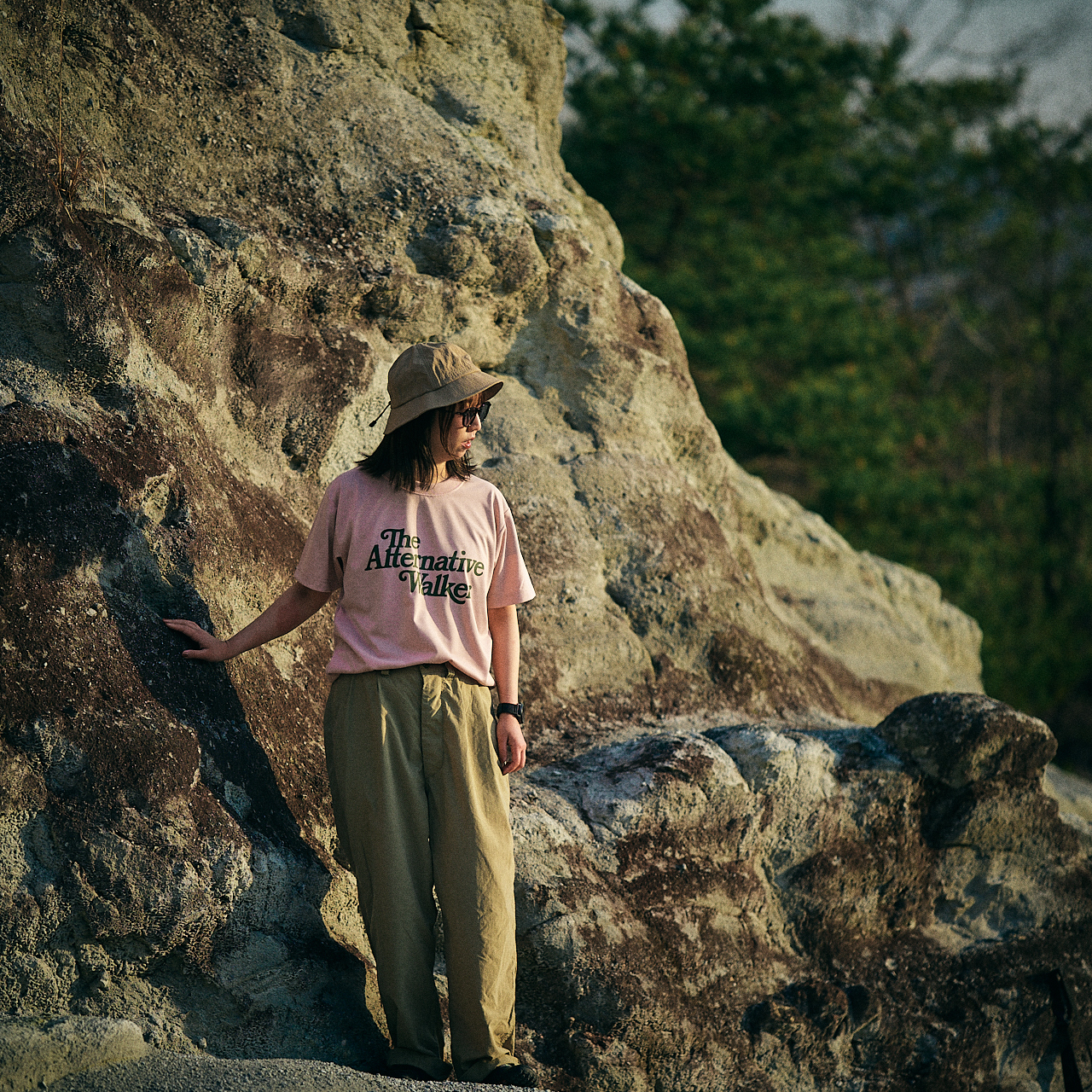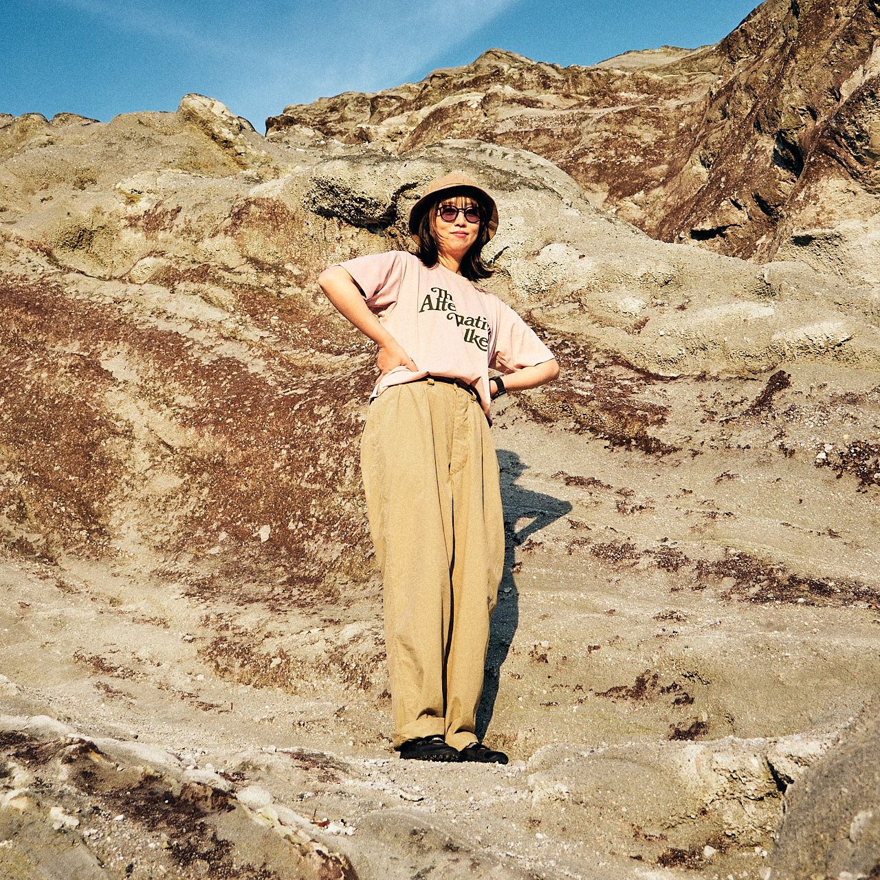素材は山でもしっかり使えるポリエステル100%ですが、質感はコットンのような自然な風合い。